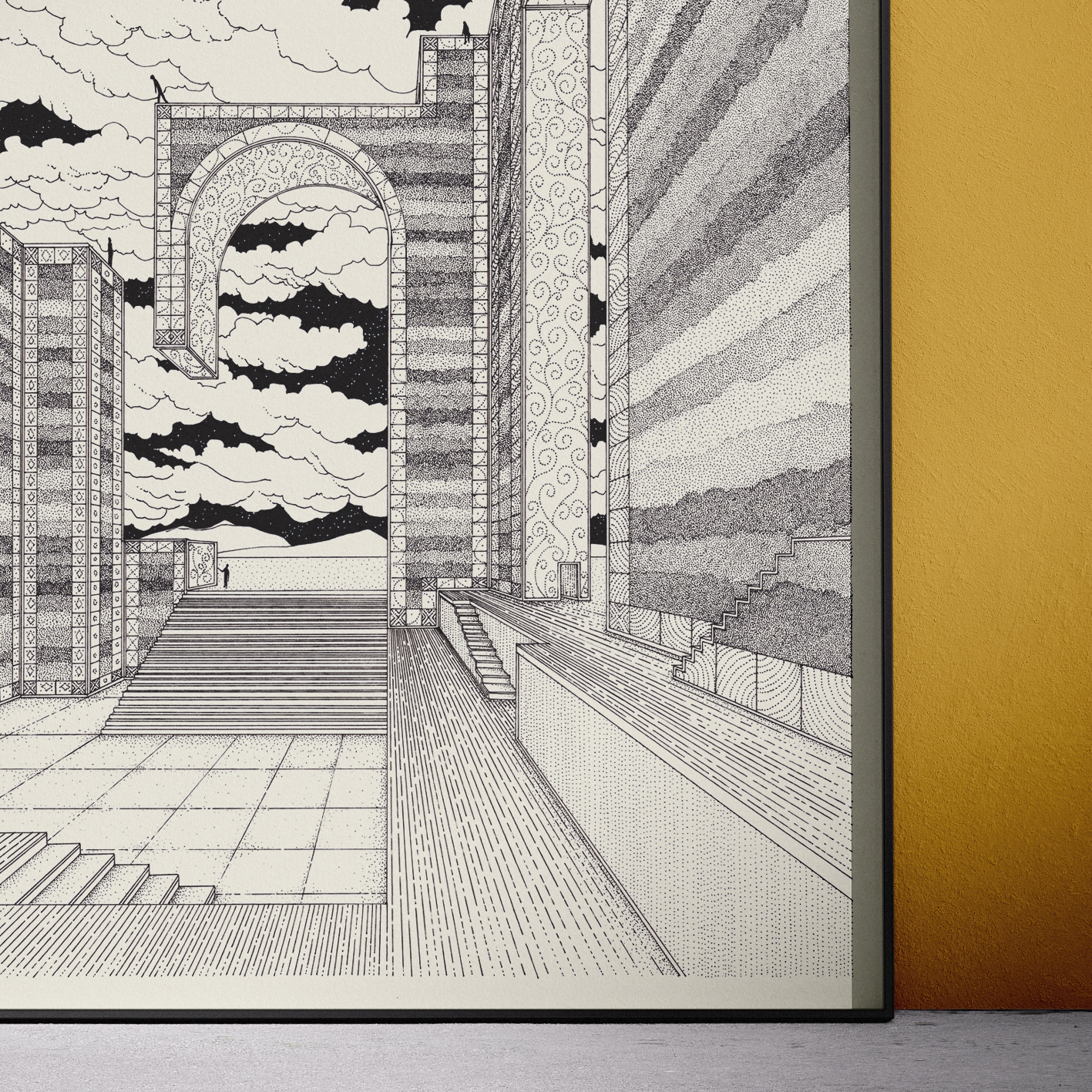 Escalas 35,00 € Desconto de %. Partilhar Size 30x40cm A4(21x29.7cm) A5(14.8X21cm) Comprar Contactar There are spaces that have no apparent function until someone walks through them. high quality giclée print of a handmade drawing 270gr cotton paper frame not included Marca Prints Tags architecturelandscapeblack and whitequiet places Características